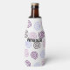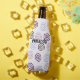 Este refrigerador a garrafa tem um design de arte em espirais em tons de roxo, azul claro e marrom, em um campo de branco. Se você quiser o mesmo design com cores diferentes, me mande uma mensagem.
