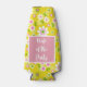 O refrigerador de frasco divertido apresenta um padrão retrô de flores brancas com centros cor-de-rosa e verdes sobre fundo amarelo. Caixa de texto rosa central com texto personalizável "Esposa da Parte"