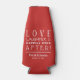 Uma pequena coisa para um favor de casamento - refrigeradores de garrafas personalizados. Mostramos vermelho com letras brancas, mas você pode mudar para qualquer cor. O texto "Amor, Rir e Feliz Nunca Depois" é completamente personalizável ou apenas personaliza com seus nomes e data de casamento. Você pode adicionar texto ao verso. Use a ferramenta "Personalizar" do Zazzle para inserir suas informações. Se você precisar alterar o posicionamento das caixas de texto, a cor ou o tamanho da fonte, basta clicar no botão "Clique para personalizar mais" para alterar essas coisas e/ou adicionar texto para trás e para baixo e alterar a cor do plano de fundo. Divirta-se com a ideia de presente para chá de casamento, janto de ensaio ou recepção de casamento. MAIS CORES na nossa loja.