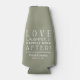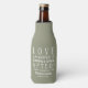 Uma pequena coisa para um favor de casamento - refrigeradores de garrafas personalizados. Mostramos verde sábio com letras brancas, mas você pode mudar para qualquer cor. O texto "Amor, Rir e Feliz Nunca Depois" é completamente personalizável ou apenas personaliza com seus nomes e data de casamento. Você pode adicionar texto ao verso. Use a ferramenta "Personalizar" do Zazzle para inserir suas informações. Se você precisar alterar o posicionamento das caixas de texto, a cor ou o tamanho da fonte, basta clicar no botão "Clique para personalizar mais" para alterar essas coisas e/ou adicionar texto para trás e para baixo e alterar a cor do plano de fundo. Divirta-se com a ideia de presente para chá de casamento, janto de ensaio ou recepção de casamento. MAIS CORES na nossa loja.