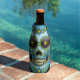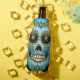 O crânio de açúcar Dia de los Muertos é tão colorido em azul com flores e olhos brilhantes de ouro.