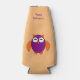 Este incrível refrigerador de garrafas apresenta uma coruja fofa com os olhos fechados como se estivesse dormindo e garras fofinhas. Seu corpo é roxo e suas asas, ouvidos e garras e bico são laranja. Esta coruja fofa é tão adorável que os adultos a amarão tanto quanto as crianças. Há texto personalizável na frente para que você possa personalizar o resfriador de garrafas com uma mensagem de sua escolha.