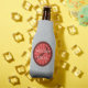 O logotipo geológico do estilo crachá nesta manga de garrafas inclui um martelo rochoso em vermelho escuro em frente a um design de rotura avermelhada do sol. Sobretudo esta é a frase personalizável "Geology Rocks!" em uma rosa claro, deco artístico, tipo industrial. Um ponto adicional para o seu nome e mensagem curta aparece no verso! O fundo apresenta um padrão de minúsculos martelos geológicos.