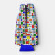 Este refrigerador de garrafas tem um design de Bauhaus de uma grelha com quadrados e retângulos em vermelho, verde, azul, laranja, azul claro, amarelo e vermelho. Altere o nome, mantenha-o ou elimine-o completamente.