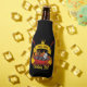 Churrasco sobre carvão inflamável, faixa de rolagem com texto personalizado sobre garfo e espátula. Cor de fundo personalizada. Texto personalizado de ambos os lados.