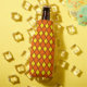 Este refrigerador de garrafas tem um design de 1970 de diamantes dentro marrom de diamantes maciços em um campo de laranja.