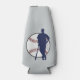 Este é um resfriador atraente para aquela cara que é um verdadeiro fã de baseball. Ele apresenta um jogador de baseball azul e uma silhueta de taco contra uma imagem de bola branca completa com costura vermelha. Seu nome ou outro texto está vermelho atrás. As imagens e o texto são colocados sobre um fundo de cinza. *Este design usa imagem © Graphics Fatory.com*