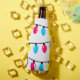 Este refrigerador de garrafas tem uma design de Natal de três cordas de luzes de Natal antiquadas.