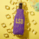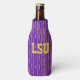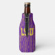 Este refrigerador de garrafas tem um design Mardi Gras geométrico de uma espécie de ovais planos que se repetem através do design em ouro e verde num campo de roxo.