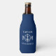 Ancoragem náutica e cavalo marinho com o seu nome personalizado ou nome do barco num Marinho Blue Bottle Cooler.