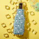 Este refrigerador de garrafas tem um design moderno do século médio de labirintos retangulares alternados e trapézios arredondados em tons de lacrimejo.
