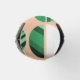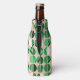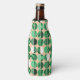 Este refrigerador de garrafas tem um design moderno do século médio de metades ovais, algumas sólidas e algumas listradas, em cores verdes num campo de laranja claro.