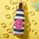 Monograma de tendências em forma de cuta ou refrigerador de frasco com padrão de banda náutica pré-definida. Personalize-o com um monograma personalizado ou outro texto em um quadro quatrefoil quic. Clique em Personalizar para alterar o texto e as fontes para criar um presente exclusivo para as suas damas de honra e festa de casamento! Entre em contato comigo antes de pedir para personalizar padrões ou design para coordenar com qualquer cor do casamento.
