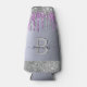 Uma festinha para uma festa feminina e glamourosa com as garotas. Um fundo metálico falso prateado com aspecto elegante roxo e brilho fino prateado, aparência de pingar tinta. Personalize e adicione seu nome e letra monográfica. O nome é escrito em preto com um moderno estilo escrito à mão com traços. Letras pretas e cinzas. Para manter as hastes, exclua apenas o nome da amostra, deixe os espaços ou emoji na frente e depois do nome.