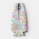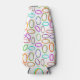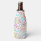 Este resfriador de garrafas tem um design geométrico de grupos de ovais espalhados em neon color num campo de branco.