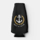 Um refrigerador de garrafa de na moda com seu nome personalizado, nome do barco ou outro texto desejado. Possui uma âncora náutica personalizada, projetada com folhas laurel em estilo ouro e emblema estelar em preto. Personalize facilmente a cor base para corresponder ao seu decoro ou tema atual. Um presente personalizado perfeito para qualquer ocasião.