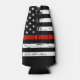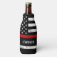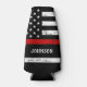 Thin Red Bottle Cooler - design de bandeira americana em cores de bandeira de bombeiro, design angustiado. Este refrigerador de bombeiros personalizado é perfeito para presentes de bombeiros, favoritos para festas de aposentadoria de bombeiros, festa de formatura de bombeiros ou para celebrar o seu bombeiro favorito. Perfeito para todos os bombeiros, bombeiros, familiares bombeiros e apoiadores. Personalize com o nome. COPYRIGHT © 2020 Judy Burrows, Black Dog Art - Todos Os Direitos Reservados. Nome Personalizado do Bombeiro Fino de Fita Vermelha Fria Freseira