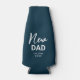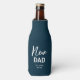 Dê a pai de ser este Novo papai moderno refrigerador de garrafas personalizado estabelecido. Ele tem um design de tipografia moderna com "novo papai" em uma escrita branca e letras de blocos, seguida de ano e nome estabelecidos. Design está na frente do refrigerador azul escuro da garrafa. Clique na opção personalizar modelo e siga as instruções.