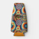 Esse refrigerador tem um design Bauhaus de diferentes grupos de círculos concêntricos em cores da década de 1970. Mantenha o nome e a fonte, mude ou os dois, ou exclua-os completamente.