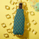 Este refrigerador de garrafas tem um médio de ovais moderno século design em brasa com semicírculos em verde e dentro marinho num campo de turquesa.
