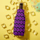 Mantenha o seu pop de refrigerante e a sua cerveja legal e as suas mãos do suor de garrafa com este refrigerador de garrafas em moda que apresenta a foto de uma flor de Geranium roxa num fundo preto e impresso num padrão repetitivo.