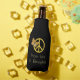 Grande símbolo amarelo de paz reconhecido em todo o mundo, com borboleta amarela sobre fundo preto. O texto "Amor de paz e borboletas" é personalizável