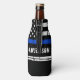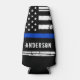 Thin Blue Line Bottle Cooler - design americano de bandeira em cores de polícia, design angustiado. Esta polícia personalizada pode ser perfeita para presentes de polícia, favoritos para festas de aposentadoria, festas de formatura de polícia ou para celebrar seu agente de polícia favorito. Perfeito para todos os agentes da polícia, polícias, família e apoiantes da polícia. Personalize com o nome. COPYRIGHT © 2020 Judy Burrows, Black Dog Art - Todos Os Direitos Reservados. Policial de Linha Azul Fino Personalizado Fresca Fresco