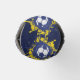 Esporte de futebol repetindo padrão personalizado de gol de futebol ou refrigerador de garrafas. O futebol branco se espalha numa rede de gotas vermelha e azul com o seu próprio nome numa cor de fundo azul escuro que pode ser alterada se necessário. Ideal para adeptos de futebol ou futebol. Personalize com sua própria escolha de nome, lendo atualmente Callum. Arte e design por www.mylittleeden.com