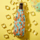 Este refrigerador de garrafas tem um design escandinavo de flores e folhas em vários tons de laranja e lacre.