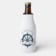 Cooler de garrafa de capitão de verão para seu cruzeiro de praia no oceano com um volante azul marinho de barco. Este design náutico temático é perfeito para uma viagem de família ao oceano ou para anunciar seu negócio de barco. Personalize na frente e atrás.