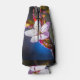 Vista aproximada de um solteiro de cereja japonesa - sakura. Flor rosa, folhas vermelhas e fundo azul escuro e verde. A estação de observação das sakura em cheio floresce é conhecida como hanami. - Os sopros estão espalhados pelo vento e o vento não se importa nada, mas as flores do coração que nenhum vento pode tocar. (Yoshida Kenko)