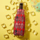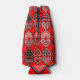 Este refrigerador de garrafas tem um design de corações Namorados, com topos no topo e fundos para fundos, com dentro de gráficos num campo de vermelho.