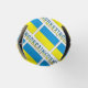 A bandeira azul e amarela ucraniana, com a palavra UCRÂNIA por baixo, nas cores da bandeira. O design é marcado para efeito artístico. Um espaço branco de quadrados rabugentos tem um lugar para o seu nome para um toque personalizado. Ou, crie um presente personalizado adicionando o nome de outra pessoa