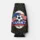 A Foam USA World Cup 2026 Bottle Cooler In Black And Gold Confetti With A Soccer Ball And American Flag