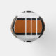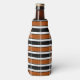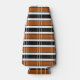 Este refrigerador de garrafas tem um design geométrico de uma xadrez com linhas castanhas e brancas sobre fundo preto.