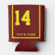 Aproveite um dia nas corridas de cavalos com a sua própria lata de refrigerante com uma design de sela de corrida. Assim como os cavalos vestem em uma derby, este tecido de sela pode ter um número mais frio e é personalizado com o seu nome. Um excelente partidário a favor de uma festa de exibição que seus hóspedes podem desfrutar durante todo o dia emocionante. Fundo de marrom com sotaques amarelos. Estilo tradicional para o cavalo número 14.