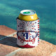Encham-se este Verão com o dia 4 de julho que o Dia da Independência pode arrefecer. Adequado para o exterior, o refrigerador mantém a sua bebida perfeitamente isolada. A design apresenta os elementos do Dia da Independência Americana - Sinalizador, estrelas e listras em vermelho, branco e azul e caligrafia moderna. A imagem central é personalizável.