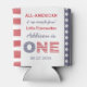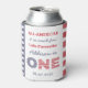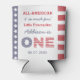 Um favor / decoração de primeiro aniversario vermelho branco e azul, incorporando as Estrelas e Stripes, mostradas aqui em uma lata mais fria, perfeita para uma celebração de primeira festa de aniversário ao ar livre.