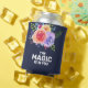 Consegue resfriar com o texto inspiracional: A Mágica está em você. Projetado com um bom buquê de rosas de aquarelas com galhos, folhas e galhos todos juntos em um arranjo floral colorido. fundo azul marinho.