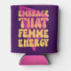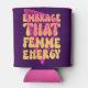 Mantenha-se atualizado e capacitado com o **"Embrace Aquela Energia Femme"** refrigerador de bebidas! Com uma tipografia ousada, esta design celebra a força e a beleza da energia feminina. Perfeito por manter suas bebidas legal enquanto fazer declaração, é o acessório ideal para qualquer um que irradie confiança e orgulho em sua feminilidade.