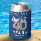 Os resfriadores personalizados aniversário de 40 anos podem apresentar um fundo azul marinho na moda que pode ser mudado para qualquer cor, brilho brilhante prateado, 40 balões de hellio prateado e um modelo de texto simples que é fácil de personalizar.