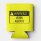 Aviso Trabalho Alergia sinal de aviso engraçado em caracteres amarelo e preto de segurança brilhantes com um símbolo de aviso de exclamação em um triângulo amarelo.