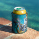 Azuis e castanhos e uma pitada de púrpura parecendo águas turquesas e pedras naturais parecidas com um rio correndo, ou ondas batendo em uma costa
