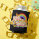 Design de texto colorido de "Amor ganha" com arco-íris, sol, borboletas, flores, nuvens decoração em fundo de grunge