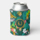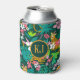 Flores e folhas coloridas da selva com animais tropicais em um padrão sem soldadura — monograma personalizável.