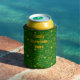 Esta lata de resfriamento tem uma design de Natal de anjos e estrelas espalhados sobre a design num fundo verde.