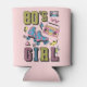 Ilustração colorida com estilo Memphis com design de texto e skate de rolo, caixa de boom, cassete e formas geométricas com "anos 80 Rapariga"
