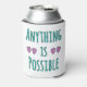 A charming and uplifting design featuring the inspirational phrase "Anything is Possible" in soft light teal, accented with two sets of delicate pink hearts to spread positivity and love.