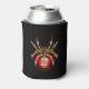Aranha mecânica, com pá-pá de ouro, engrenagens de latão e uma lâmpada de vidro vermelha sobre fundo preto. Estilo Steampunk.