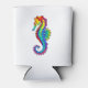 Articulação artificial, brilhante, arco-íris, cavalo de mar poligonal sobre fundo branco. Tatuagem brilhante.